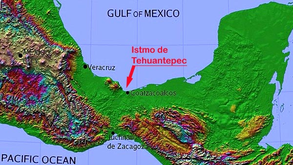 • A direção através do Istmo de Tehuantepec é do norte ao sul.